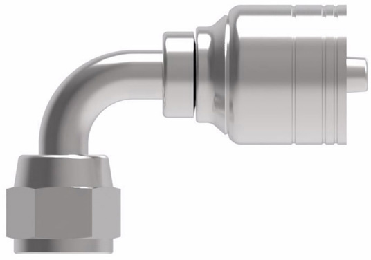 JIC 37 Female Swivel Long Drop 90 Degree Elbow for 3/8 Inch hose. With 9/16×18 threaded fitting.
