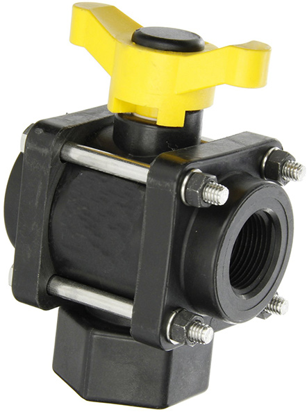 3-Way Bottom Load Poly Valve. BOTTOM LOAD: Directional flow, right or left. Valve can be turned off to stop flow.