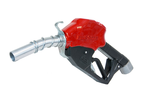 1″ High Flow Automatic Nozzle. Diesel Spout, Red Cover, Hook, and Spring on Spout. 3 Position Hold Open Latch. Rated for 50 PSI. NPT Threads. Working Flow Rate Range is 5 to 25 GPM.