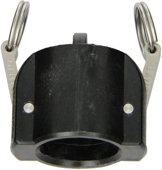 Polypropylene Dust Cap with stainless steel arms. Works on 100 and 125 Banjo coupler/adapter end.