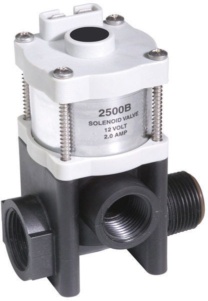 12 Volt Boom Shutoff Valve – 10 GPM – 100 PSI – 3/4″ FPT inlet, 3/4″ MPT bypass and 1/2 FPT boom outlet – Viton – Clear clamshell package – Made in USA. Replaces 2500A1.