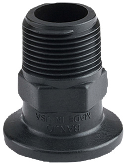 Banjo Manifold Fitting. 2″ Full Port Flange x 2″ Male Pipe Thread. Quick and easy assembly. Easy On/Off hose connections. 360 Degree Orientation. 1″ and 2″ fittings pressure to 150 PSI @ 70 Degree F 3″ fittings pressure to 125 PSI @ 70 Degree F
