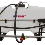 25 GAL ATV SPRAYER WITH SIDE MOUNTED PUMP AND MANIFOLD SYSTEM, 4.5 GPM PUMP 45 PSI, LIQUID FILLED GAUGE, 3 TIP LIQUID BOOM WITH SHUT-OFF ON EACH TIP, BOOM HAS 30 FT COVERAGE (15 FT EACH TIP)