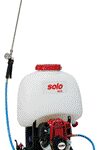 Solo Motorized Backpack Sprayer, 2-cycle engine, 25 cc, 18.3 lbs., 5.3 gallon capacity.