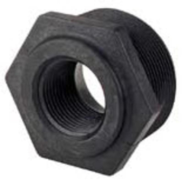 Banjo RB075050 Reducing Bushing, Thread Size 3/4″ x 1/2″, Connection MPT x FP,T Material of Construction is Polypropylene, Max Pressure is 150 PSI, Temp Range -20 to 150 Deg F, Color is Black.