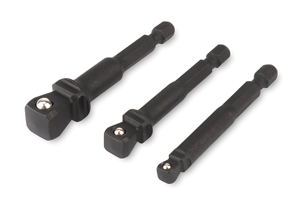(1) 3/8 in. drive, size: 2-1/2 in. (65 mm) ,(1) 1/2 in. drive, size: 2-3/4 in. (72 mm), Adapts sockets to power drills and drivers 1/4 in. Shank, Detent ball for secure socket retention