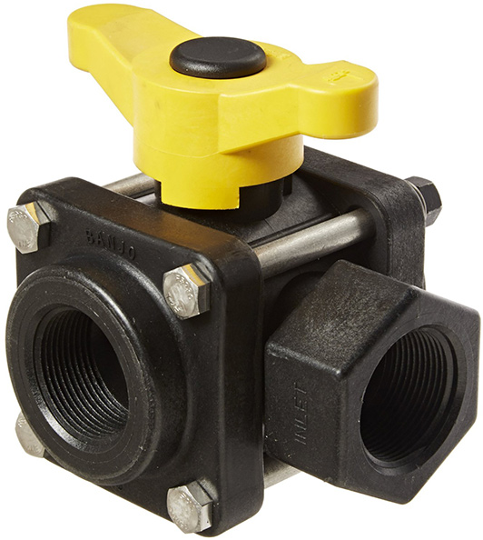 Banjo V125SL 1 1/4″ 3-Way Side Load Poly Valve. SIDE LOAD: Directional flow, right or left. Valve cannot be turned ofF