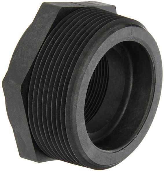 Black Polypropylene Reducer Bushing with 3″ x 2″ pipe thread