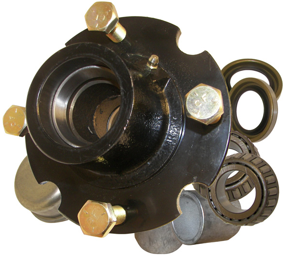 Includes: (1) 10-4 Hub, (1) L44610 Inner Cup, (1) L44643 Inner Cone, (1) L44610 Outer Cup, (1) L44643 Outer Cone, (1) 906282 Seal, (1) 909900 Hub Cap, and (4) 943549 Bolts, (2) 911251 Hub Spacers