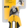 Spring-loaded to reduce hand fatigue. For left and right-handed users. Easy to use safety lock. Cutting cap