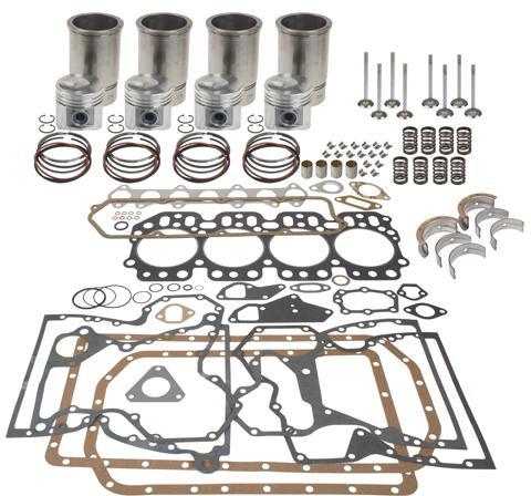 Engine overhaul kit for 201 CID 4 cylinder engine. Kit contains sleeve and piston kit, gasket set, .010 rod bearings and main bearings, intake valves, exhaust valves, springs, guides,and keys. For tractors: W, WC, WF, W25, WD.
