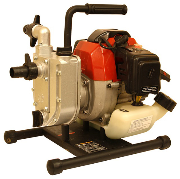 2 cycle engine, 2.5 HP, 8000 rpm, 26.4 GPM of water maximum flow, 40:1 fuel to oil mix. Lightweight, only 16 pounds.
