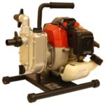 2 cycle engine, 2.5 HP, 8000 rpm, 26.4 GPM of water maximum flow, 40:1 fuel to oil mix. Lightweight, only 16 pounds.