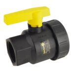 BANJO UV100FP 1 inch SINGLE UNION POLY BALL VALVE precision molded in glass reinforced polypropylene, for strength and chemical resistance while also being lightweight and easy to handle. Interlocking body and end plate to allow easy thread connection when installing valves. EPDM O-rings to handle most fertilizers and many chemicals.