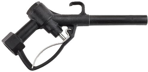 Polypropylene Dispensing Nozzle – 1″ Pipe; stainless steel handle, spring, and pin; Viton rubber parts.