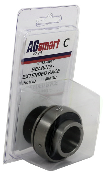 1-1/2″ ID, 80MM OD Extended Race Insert Bearing with Eccentric Lock Collar Lock Collar. AgSmart retail-ready clamshell packaging.