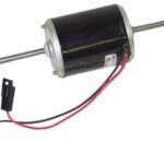 Blower motor – double shaft – 12 volt single speed 2 wire motor with 5/16″ shafts. Tractors: 4000, 4020, 4030, 4040, 4230, 4240, 4320, 4430, 4440, 4520, 4620, 4630, 4640, 4840, 5020, 6030, 7020, 7520, 8430 4WD, 8630.