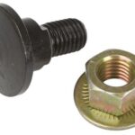 Bolt with nut, for rotary disc/drum mowers. Bolt 12mm x 27mm, 30mm round head, 6mm shoulder length, 17.8mm (45/64″) shoulder diameter. 19mm x 10mm nut. Use with .157″(4mm) thick blades. For use with Kuhn blades: 564-512-00, 564-512-10, 564-513-00.
