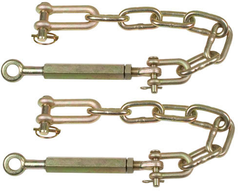 Chain stabilizers, Turnbuckle and chain links adapt to any size 3-point hitch. Move clevis up or down chain links; use turnbuckle for final adjustment. Packed and sold in pairs, less brackets.