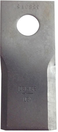 Disc Mower Blade. Clockwise, 4.3″, 109 mm long, 0.889″, 22.6 mm hole diameter.