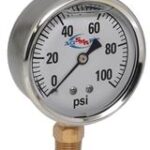 Gauges filled with liquid provide effective dampening of most pulsation and vibration and provide lubrication of all moving parts. These gauges require no dampening device. 2-1/2″ diameter case, 1/4″ MPT brass inlet.