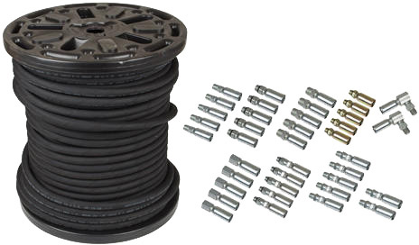 Hydraulic hose assembly starter kit, Ryco. Contains 3/8″ hose and hose ends.