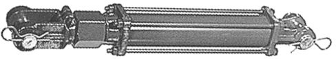 Cylinder, Cross hydraulic tie rod. DE-ASAE Series. 4″ bore, 8″ Stroke, 1-1/4″ shaft dia., 20-1/4″ closed length, 1/2″ port size, 1″ pin dia., 44 wt.