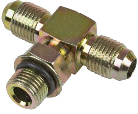 3/8 Male JIC (9/16-18) x 3/8 Male JIC (9/16-18) x 3/8 Male O-Ring Boss (9/16-18) – Straight Thread Branch Tee – Steel