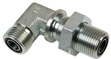 1/2 Male OFS (13/16-16) x 1/2 Bulkhead Male OFS (13/16-16) 90° – Bulkhead Union Elbow w/Locknut -Steel