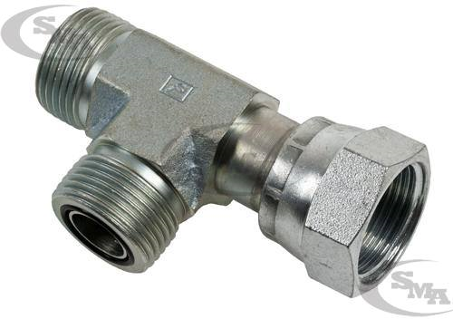 3/4 Male OFS (1-3/16-12) x 3/4 Female OFS (1-3/16-12) Swivel x 3/4 Male OFS (1-3/16-12) – Swivel Nut Run Tee – Steel