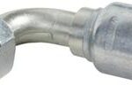 Parker 43-Series Hydraulic Fitting. Female Metric L, Swivel, 90deg Elbow, Ball Nose. Thread Size: M26x1.5, Tube Size: 18mm, Hose ID: 5/8″, (A)Overall Length: 3.58″ (91mm), (B)Cutoff Allowance: 2.05″ (52mm), (W)Hex Size: 32mm