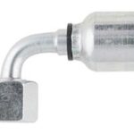 Parker 43-Series Hydraulic Fitting. Female Metric L, Swivel, 90 deg Elbow, 24deg Cone with O-ring. Thread Size: M14x1.5, Tube Size: 8mm, Hose ID: 1/4″, (A)Overall Length: 2.32″ (59mm), (B)Cutoff Allowance: 1.38″ (35mm), (W)Hex Size: 17mm