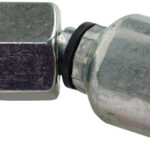 Parker 43-series hydraulic fitting, Female Metric S – Swivel – 45 degree Elbow, Tube size: 8mm, Thread size: M16 x 1.5, Hose ID: 1/4″, (A)Overall length: 2.32″ (59mm), (W)Hex size: 19mm, (B)Cutoff allowance: 1.38″ (35mm)