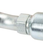 Parker 43-series hydraulic fitting, SAE Code 61 Flanged-head, 45 degree Elbow, (ISO 12151-3-E45S-L), Tube side: 1″, Hose ID: 3/4″, (A)Overall length: 3.85″ (98mm), (B)Cutoff allowance: 2.41″ (61mm), (F)Diameter: 1-3/4″
