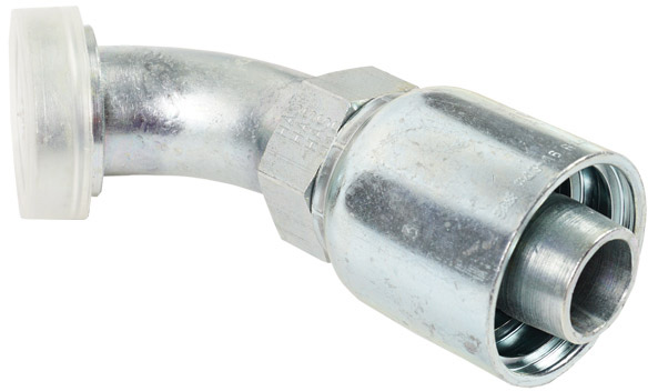 Parker 43-series hydraulic fitting, SAE Code 61 Flange-head, 60 degree Elbow, Tube size: 1″, Hose ID: 1″, (A)Overall length: 4.45″ (113mm), (B)Cutoff allowance: 2.83″ (72mm), (F)Diameter: 1-3/4″