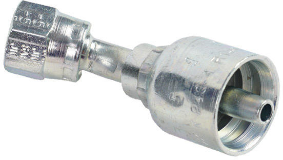Parker 43-series hydraulic fitting, Female JIC 37 degree, Swivel, 45 degree Elbow, Short drop, Tube size: 5/16″, Thread size: 1/2″x20, Hose ID: 1/4″, (A)Overall length: 2.19″ (56mm), (B)Cutoff allowance: 1.44″ (37mm), (W)Hex size: 5/8″
