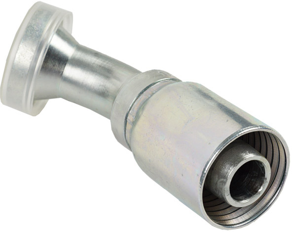 Parker HY-Series Hydraulic Fitting. SAE Code 61 Flange, 45deg Elbow. Flange OD: 1.50″ (38mm), Hose ID: 3/4″, (A)Overall Length: 4.11″, (B)Cutoff Allowance: 2.53″