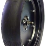 Uses 4.5X16 JD style offset chine tire, black steel wheels with black nylon cover on one side and stem bearing with groove. Used on JD planters. Will replace JD AA41359.
