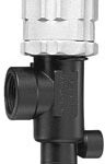 Piston Type Pressure Relief Valve – 1/2″ NPTM inlet and F outlet – Polypropylene with stainless steel spring – Viton O-Rings – 1/4″ port for pressure gauge