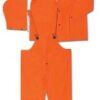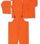 XX-Large 3-pc. Orange PVC/Polyester Rainsuit – 32″ Jacket, Detachable Hood, and Bib Overalls – Extra large cut to fit over work clothes – 100% Waterproof & Non-Conductive.