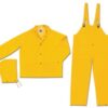 X-Large 3-pc. Yellow PVC/Polyester Rainsuit – 32″ Jacket, Detachable Hood, and Bib Overalls – Extra large cut to fit over work clothes – 100% Waterproof & Non-Conductive.