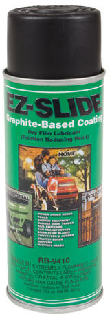 12.8 oz. Aerosol EZ-Slide 9512 Series Graphite-Based Coating – Alkyd graphite-based lubricating paint that bonds quickly to most surfaces – Lead free – Order Multiples of 6.