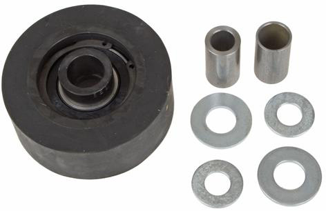 Pulley, Black Ace tightener. For 80″ pitch and smaller roller chain sizes. 1/2″, 5/8″, & 3/4″ bolt hole mounting sizes. 1-3/8″ width, 3-1/2″ OD, 1/8″ one side D.