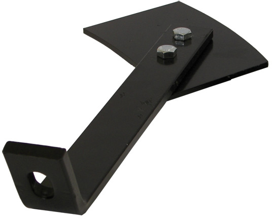 Right hand front (left rear) gang scraper assembly for Model 480. specs: arm is 12″ on the straight part. 21/2″ curve on end of arm. Blade is 4×6 1″ bolt hole.