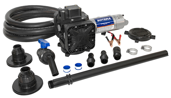 Includes: 2″ MPT and 2″ Bottress adapters, suction pipe, ball valve, hose and battery cable.