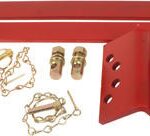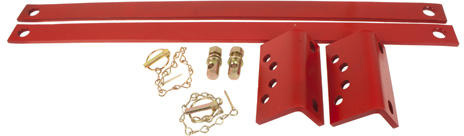 Stabilizer kit for category I 3-point hitch, 33″ hole spacing. Contains 2 arms, 2 brackets, 2 stabilizer pins with nut and lock washer, and 2 linch pins with chains.